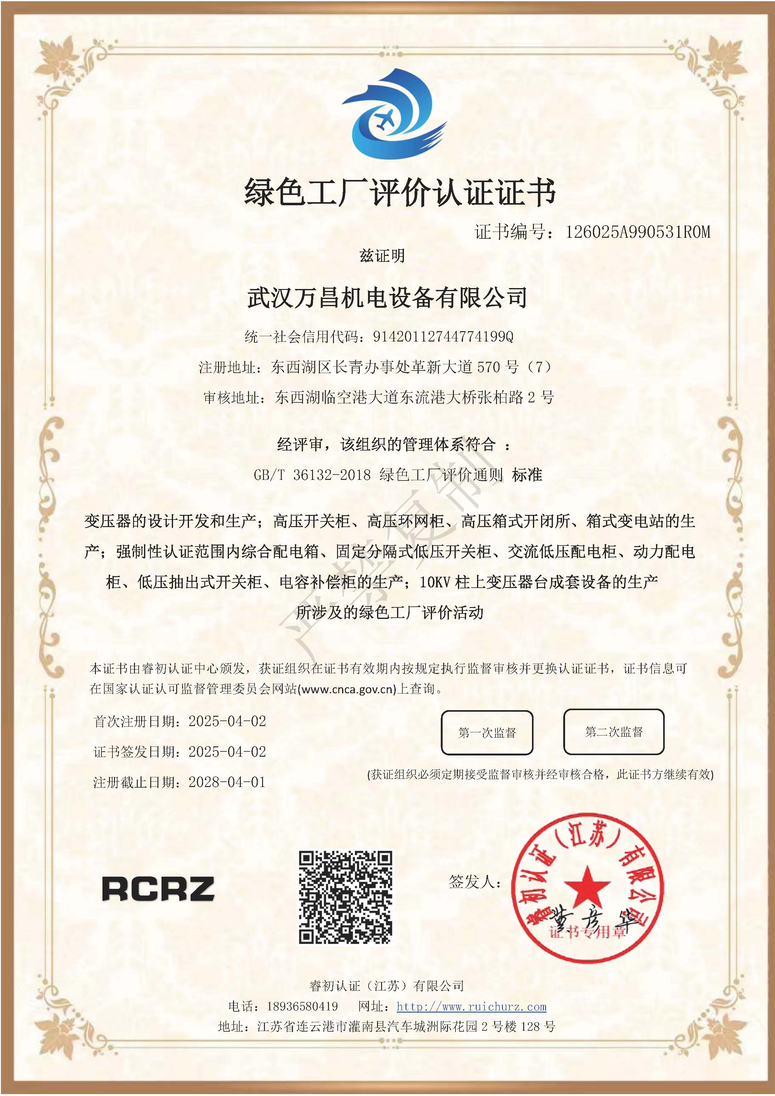 綠色工廠評價認(rèn)證證書